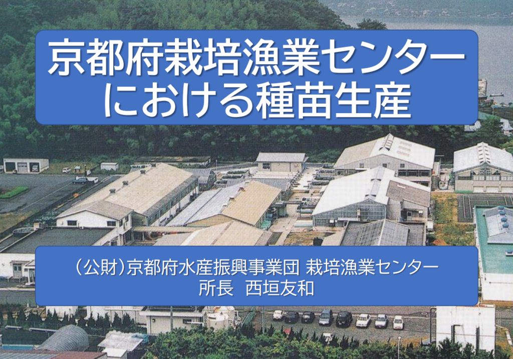 また、話題提供として、関西電力宮津エネルギー研究所跡地に隣接する(公財)京都府水産振興事業団の西垣所長に、当該法人で実施しているマダイやアワビ等の種苗生産における課題をお話しいただきました。