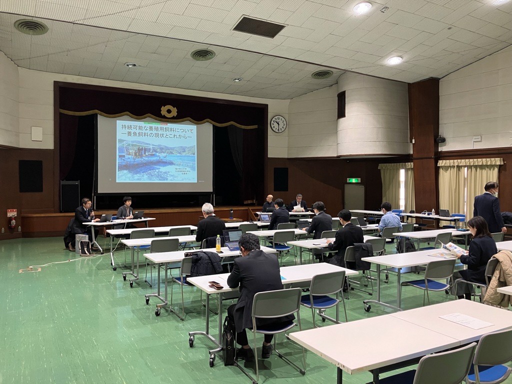 大学や企業の方々が現地・オンライン含め30名近くご参加いただき、餌料供給について今後求められる条件や、新たな種苗生産魚種の可能性などについて質疑応答がありました。